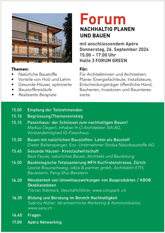 Link zur Anmeldung: https://bautrends.ch/bauen-modernisieren/de/fachvortraege-forum-nachhaltig-und-gesund-planen-und-bauen